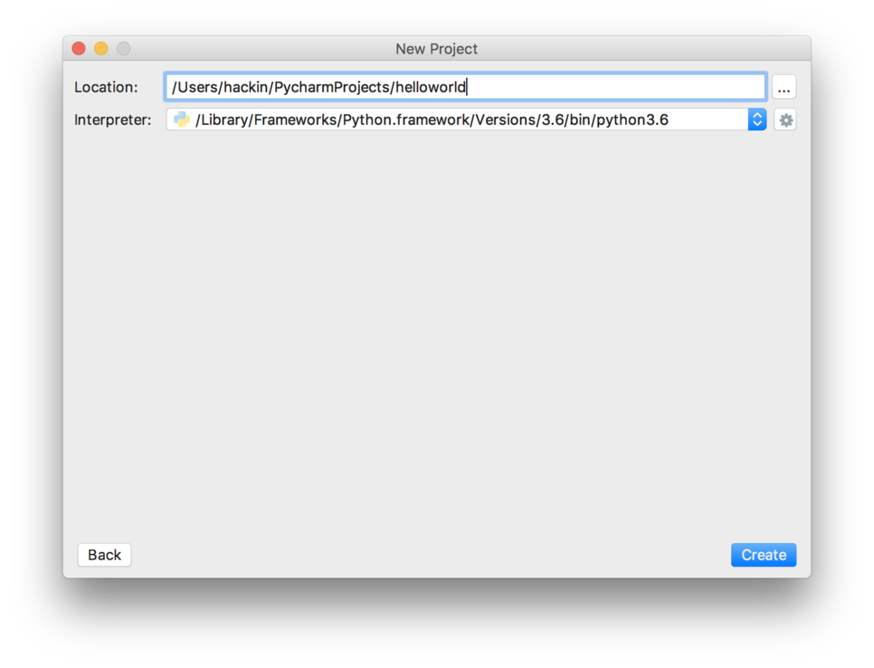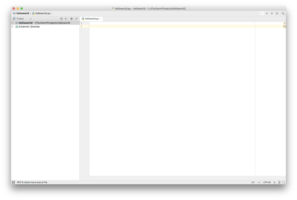 이제 설치한 파이참으로 파이썬 프로젝트를 하나 만들어 실행해보자. 역시 가장 만만한게 "Hello World" 프로그램이니 파이참으로 작성해보자.