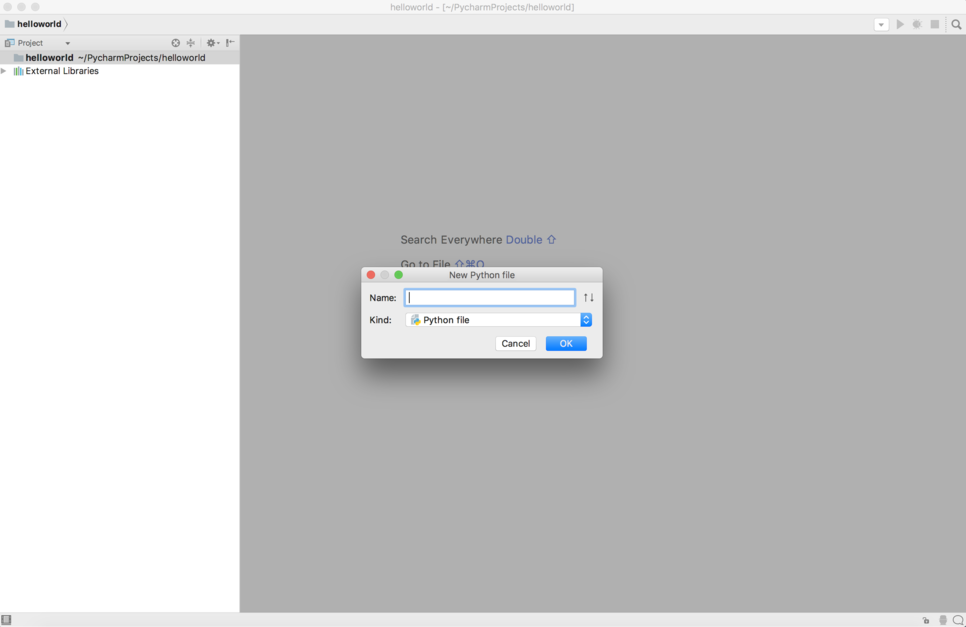 새로 생성돌 파일의 이름을 입력해준다. "helloworld.py"를 입력하자.