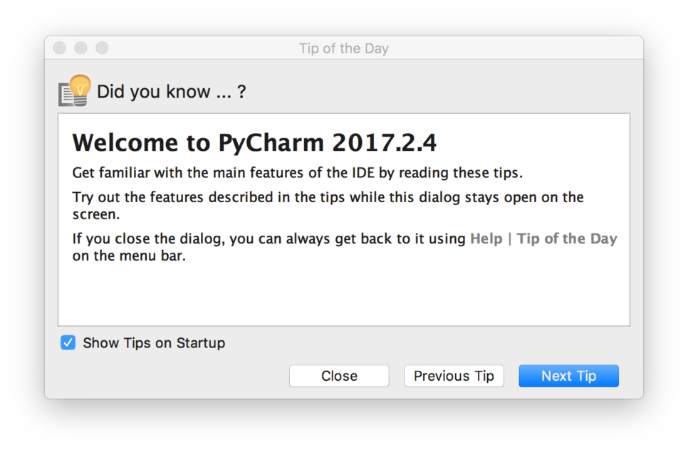 프로젝트가 생성되면 파이참이 이런저런 팁들을 준다.