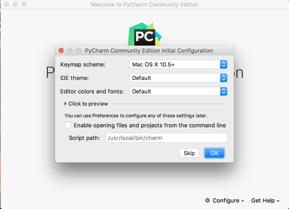 기존에 사용중이던 파이참 설정이 있으면 import해서 사용할 수 있다. 파이참을 처음 설치하는거라면 'Do not import settings'를 선택해서 초기화하고 진행하자.