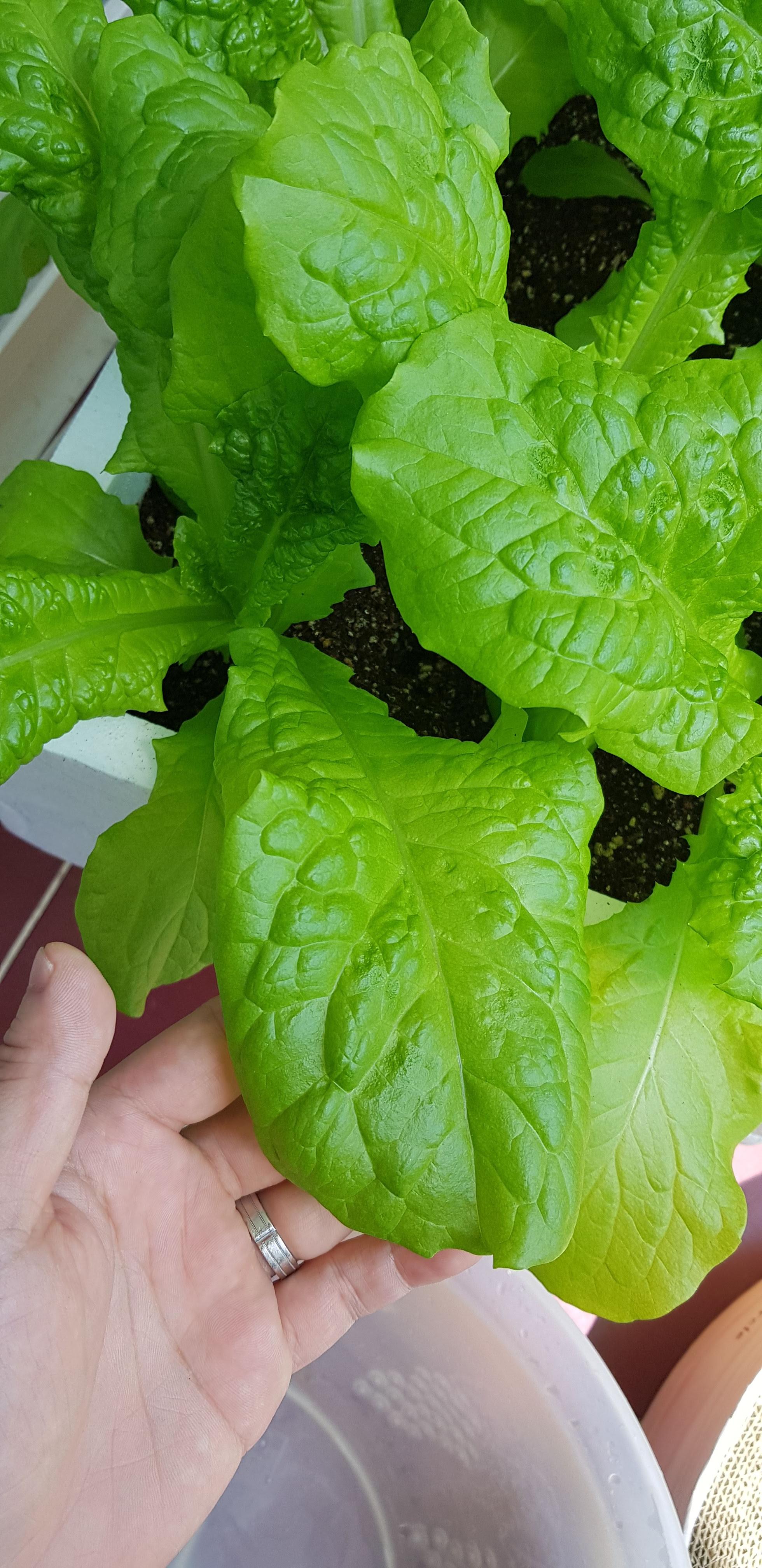 진짜 파는 상추같죠? 새로 나온 상추잎들이 잘 자랄 수 있도록 이발을 해줍니다.