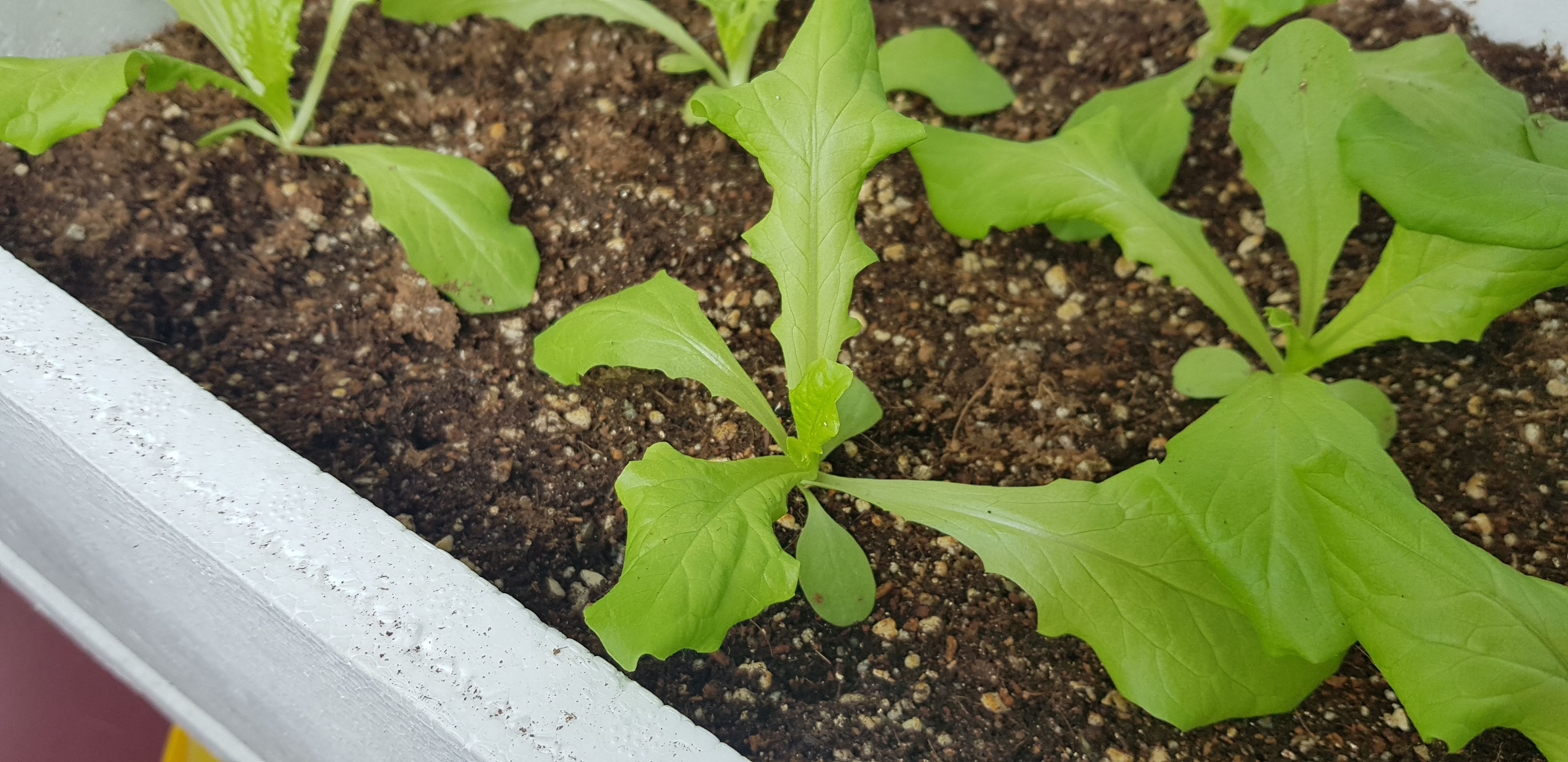 이제 스티로폼 화분의 상토가 잘 보이지 않을 정도로 잎이 풍성해졌습니다. 일부는 잘라서 먹어도 될 정도로 상추다워졌습니다.
