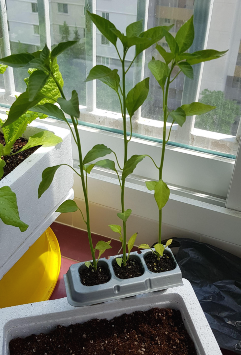 2021년 처음으로 시작했던 베란다 회분에서 상추와 고추, 대파가 무럭무럭 자라고 있습니다. 처음 심었던 상추와 대파는 자라나는 속도를 먹는 속도가 따라가지 못 할 정도로 자라고 있습니다. 성공적인 상추 농사에 이어서 좀 더 난이도가 높은 작물인 고추농사를 지어보고자 5월 5일 어린이날에 고추모를 옮겨 심었습니다.